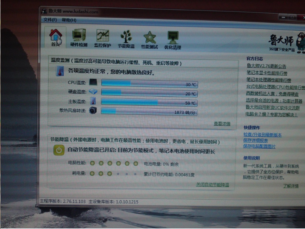 用鲁大师检测,稍有遗憾的是屏幕是08年生产的,加的那根内存条是新的,但也是09年3月的,小小遗憾中...废话不多说,先上图: