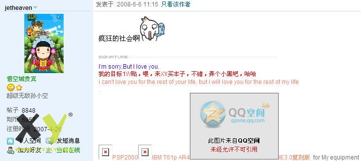 原帖由 mxs0406 于 2008-6-6 11:19 发表 为什么你的签名我看不到图呢??